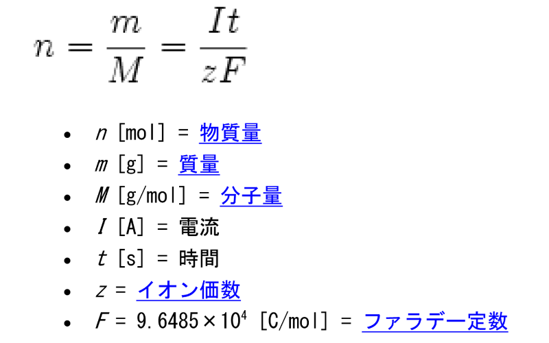 これは、1グラム当りの当量の物質を析出させるのに必要な電気量は、物質の種類によらず一定であることを示している。